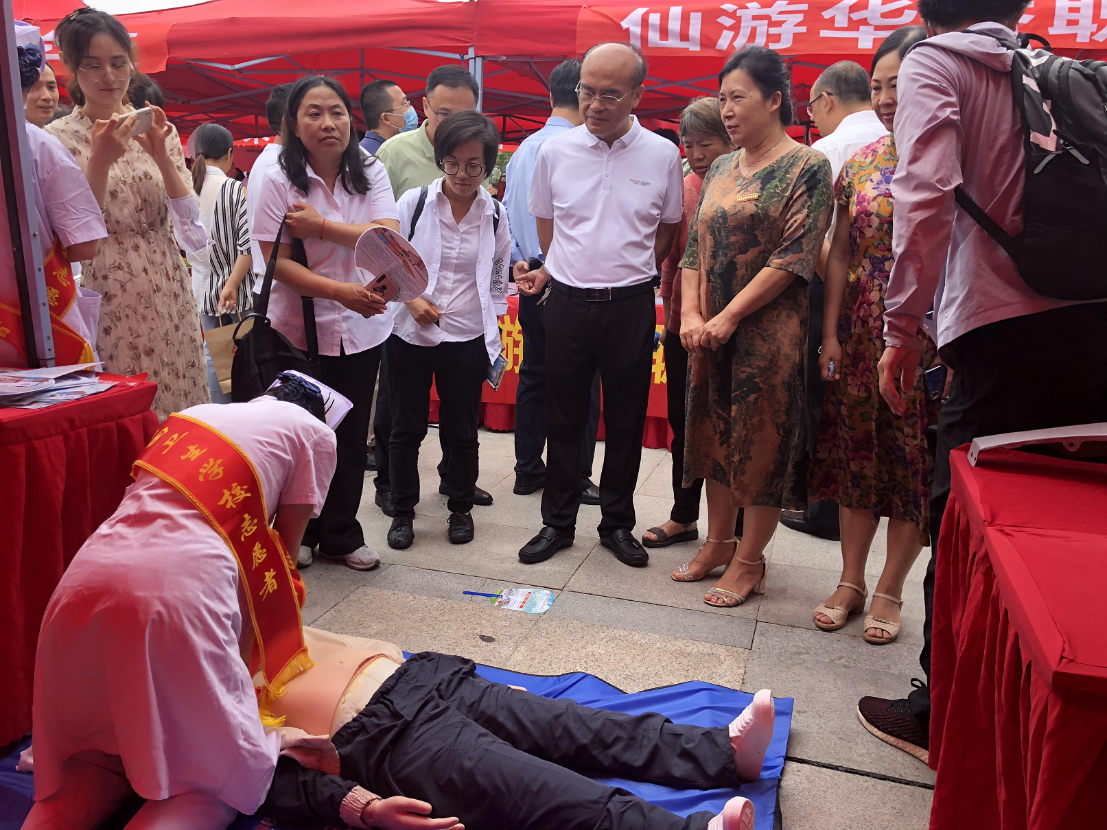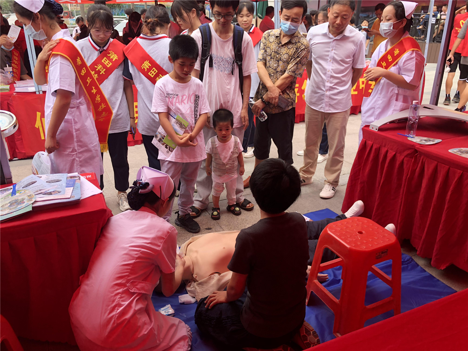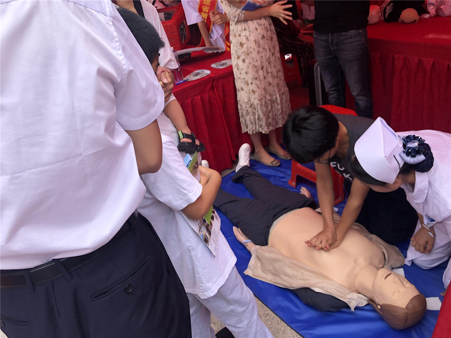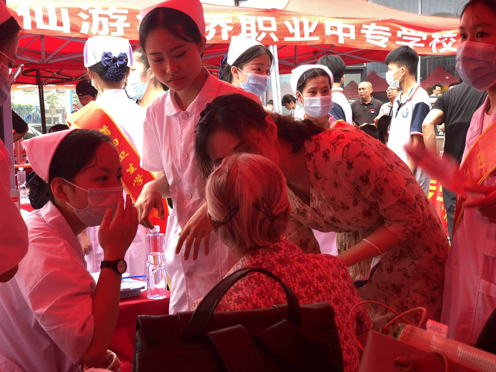 此次展会集招生政策咨询、办学特色宣传、学生技能展示于一体。活动现场,我校师学生根据专业技能带来两了个独具特色的展示。一个是由福建省护理技能大赛上获奖学生进行心肺复苏操作的演示。现场激发许多年轻人浓烈的学习兴趣,兴致勃勃地进行观摩学习。二是为群众测量血压、体重,吸引了许多中老年人围观、体验,并为他们提供健康指导,让群众更直观地感受到职业教育的实用性。另外,我校还带来了一个小品《我们在疫起》。2020年新冠病毒突袭而至,疫情来势汹汹,人民生命安全和身体健康面临严重威胁。医护人员不畏感染风险,危急关头,更显英雄本色,白衣为袍,驰援荆楚,这个作品就是基于这样的背景下诞生。世上没有从天而降的英雄,只有挺身而出的凡人,平凡却伟大的医护人员给予了人们最多的感动,本小品表演吸引了不少市民驻足观看。在展板展示区一角,也吸引了许多学生家长,多角度地了解学校的发展变迁、办学成就及咨询今年的相关招生讯息。