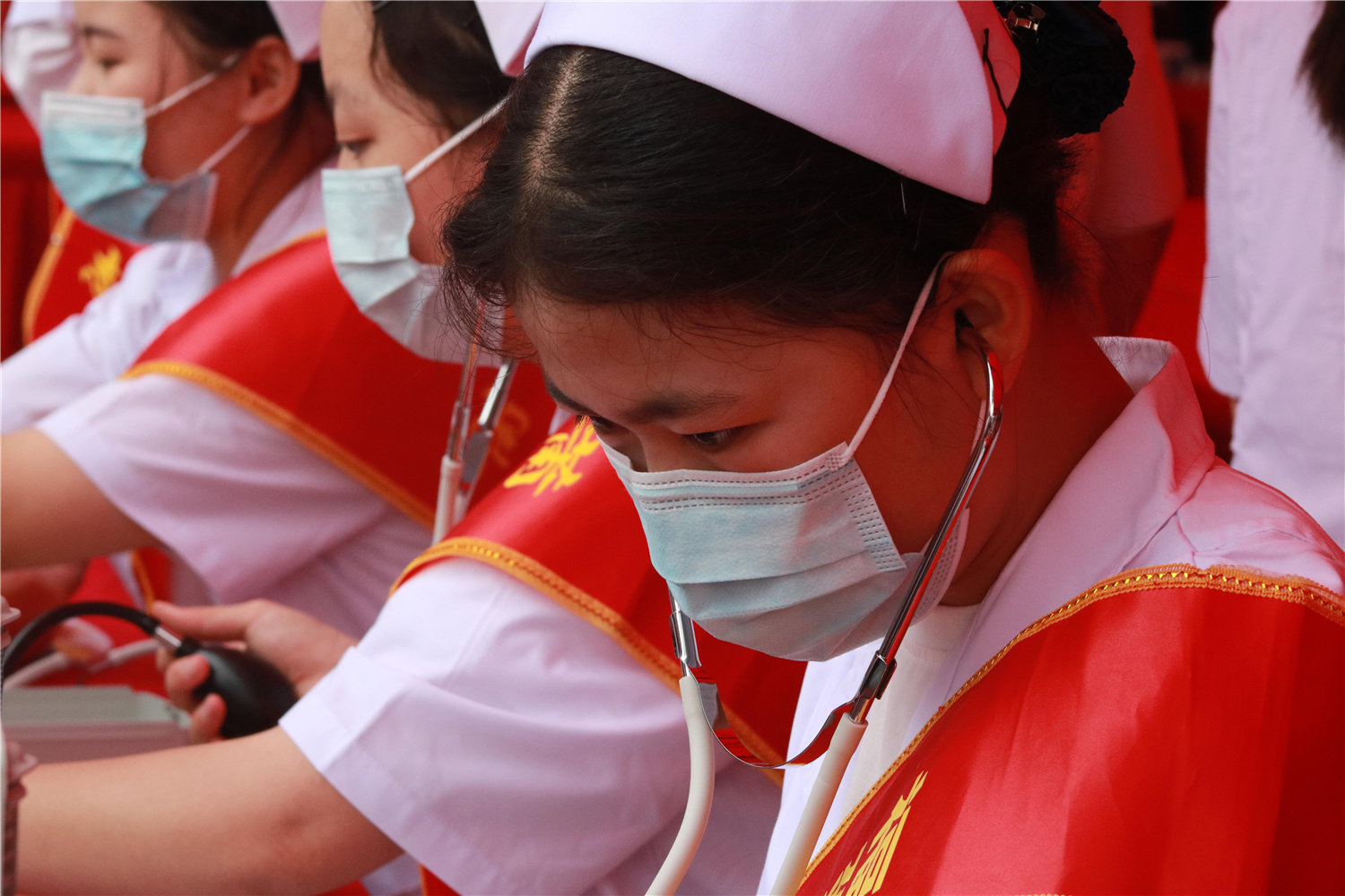 有人说“哪里有什么白衣天使,不过是一群孩子换了一身衣服。”今天我校把孩子们带出来,他们是这里一道靓丽的风景。当他们走上工作岗位,一旦披上战袍,就化身为白衣战士,为患者照亮康复之光。口罩会盖住他们的脸,防护服遮住他们的身,甚至有时候护目镜在长时间的佩戴下也会模糊他们的眼,但是,他们坚定的眼神、坚定的信仰却有着战胜一切困难的无限力量。