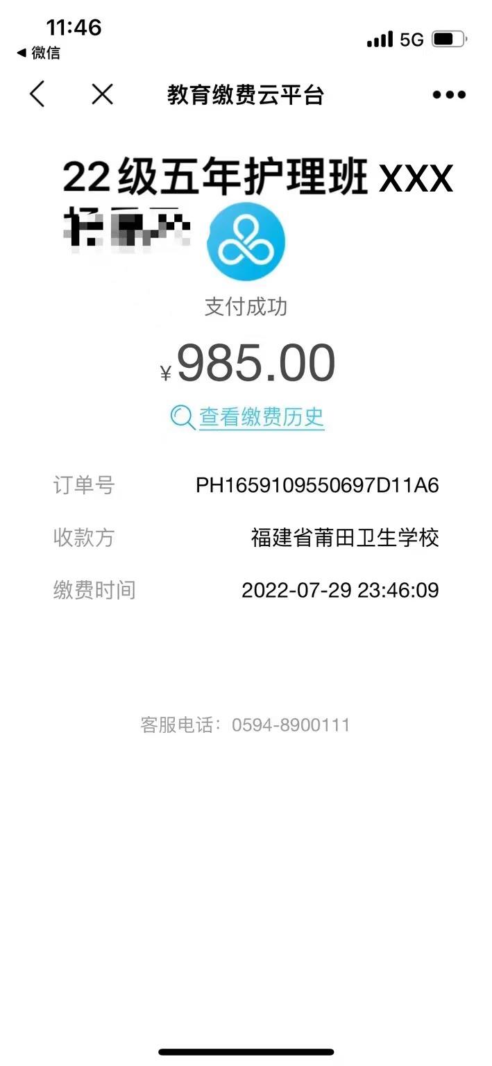 温馨提示:缴费成功后请截屏(包含学生信息),备注XX专业XX班级,示例1或者示例2均可。